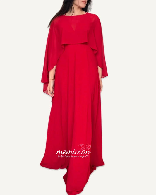 614411 Vestido capeado con lentejuelas