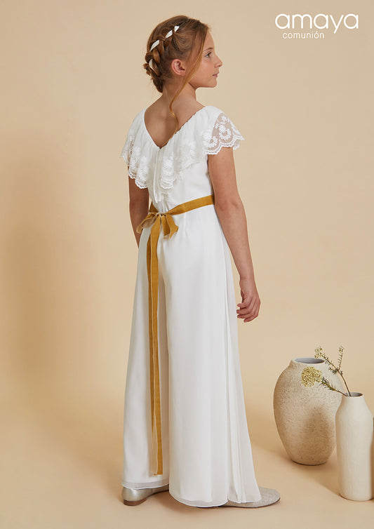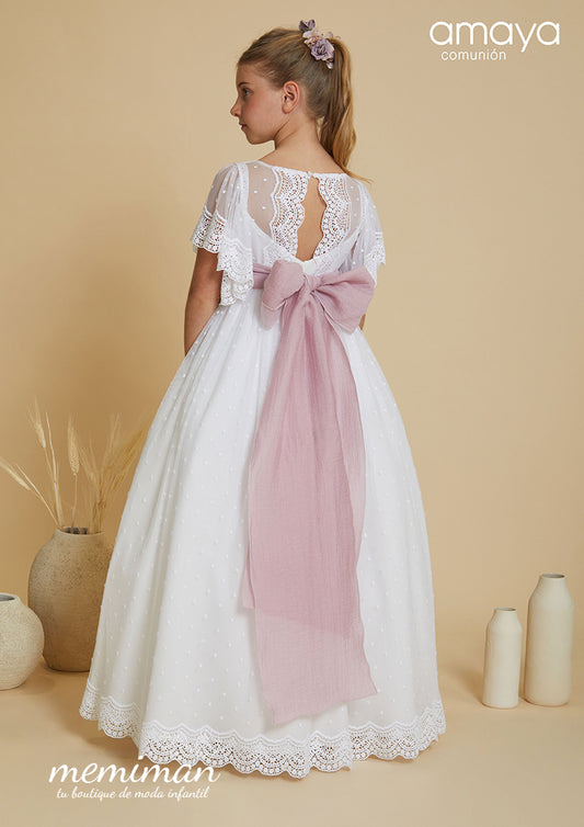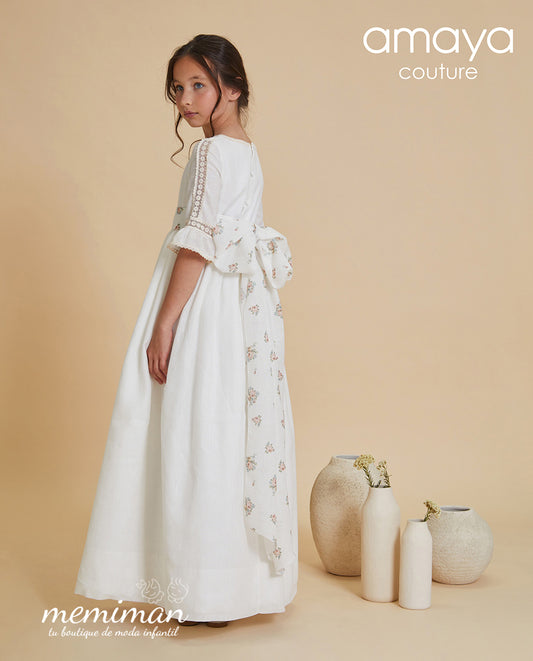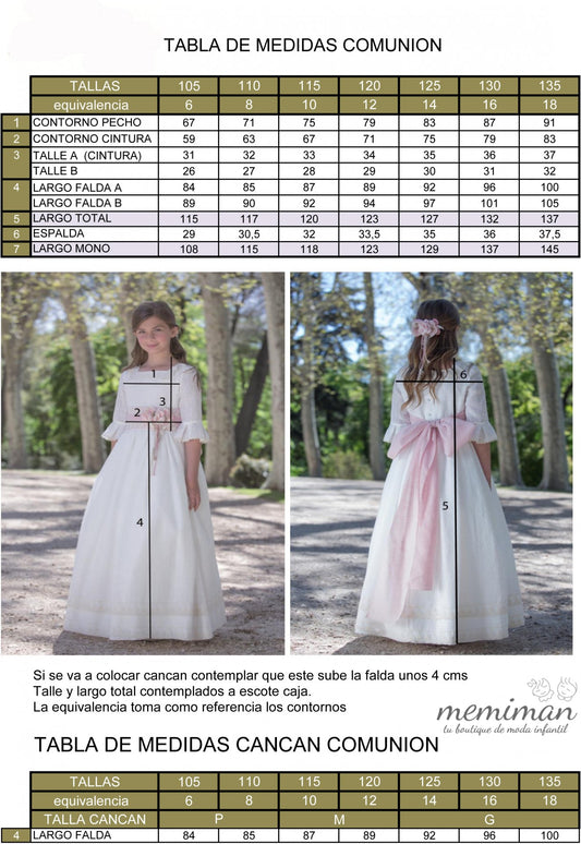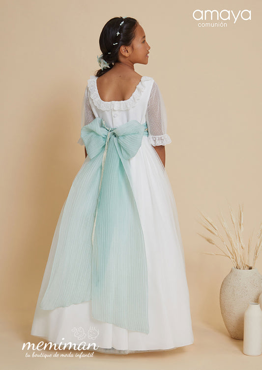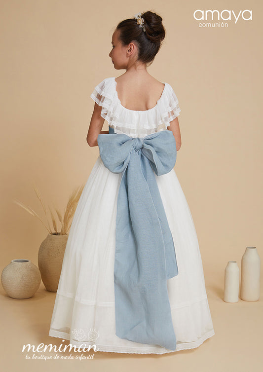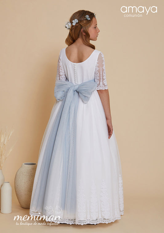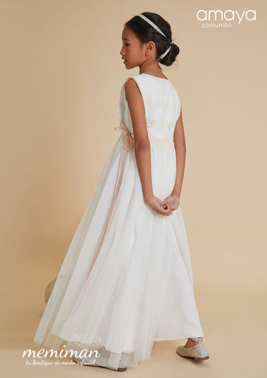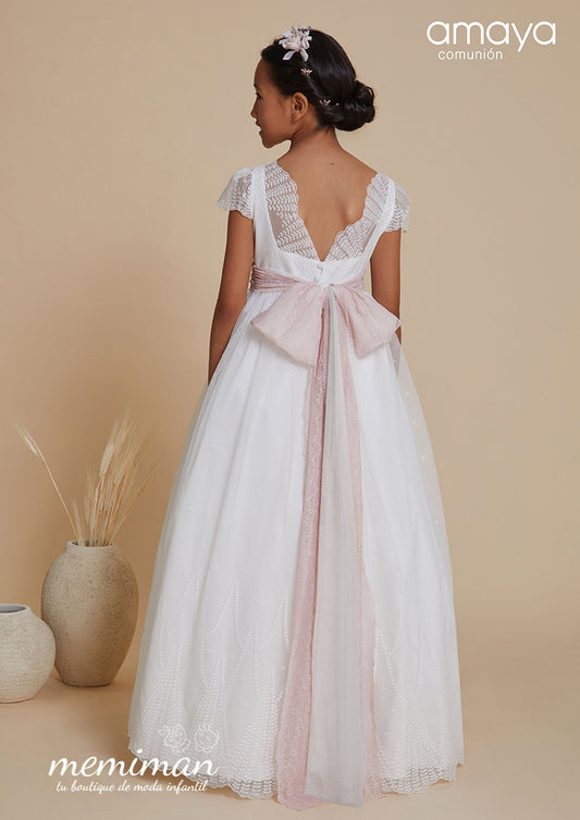 617011MD Communion dress embroidered tulle with dropped sleeves