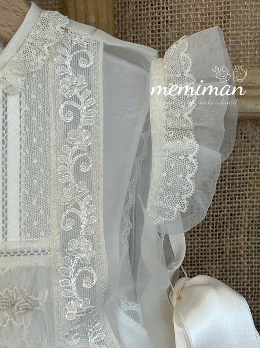 487 English Batiste Mantilla with Bonnet