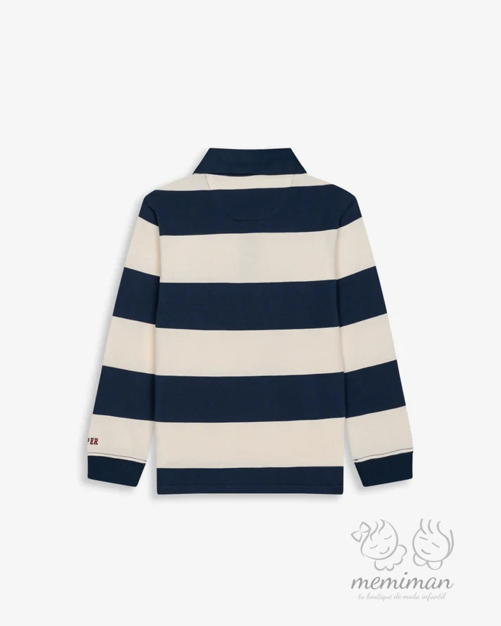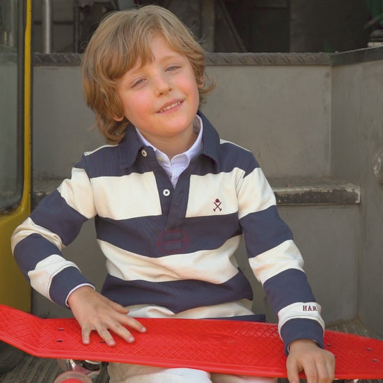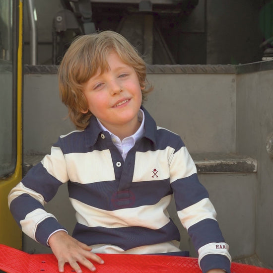 Inspired by classic rugby, tailored for younger players. 100% cotton fabric, contrast collar, and preppy design. A basic with a sporty attitude.