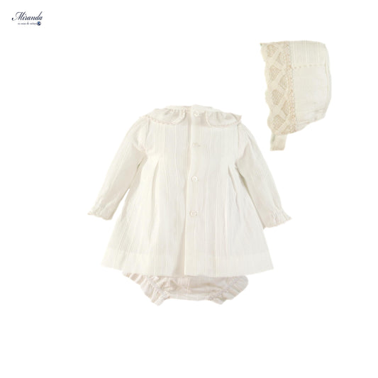 36-0021-VBG Robe bébé avec culotte et bonnet