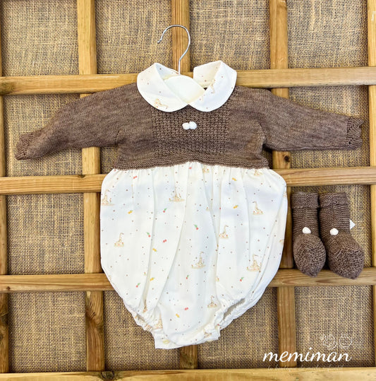 252-4595 Combinaison tricotée avec tissu en oie