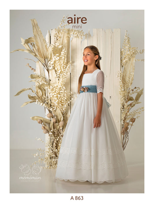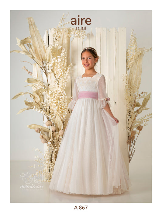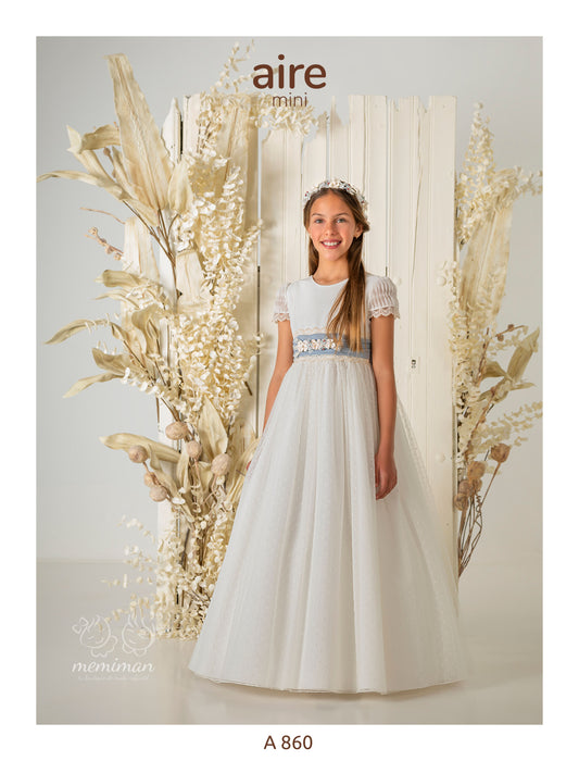 Chez Memiman, nous sommes spécialisés dans les robes de Première Communion et proposons toujours les dernières tendances pour les célébrations de Première Communion de votre fille en 2026, tout en offrant des styles classiques et romantiques, ainsi que des accessoires tels que couronnes, diadèmes, jupons, gants, sacs à main, chapelets, croix, chaussures, ballerines, espadrilles, collants et bien plus encore. Nous comprenons l'émotion que suscite le choix de la robe de Première Communion parfaite et nous sommes là pour vous accompagner. Notre collection de robes, tailleurs et combinaisons pour filles a été soigneusement sélectionnée parmi les plus grandes marques, capturant l'essence de l'élégance et de la mode actuelle : robes classiques et intemporelles, créations contemporaines et styles audacieux et innovants. Chaque vêtement est conçu pour faire de la Première Communion de votre fille un moment inoubliable.