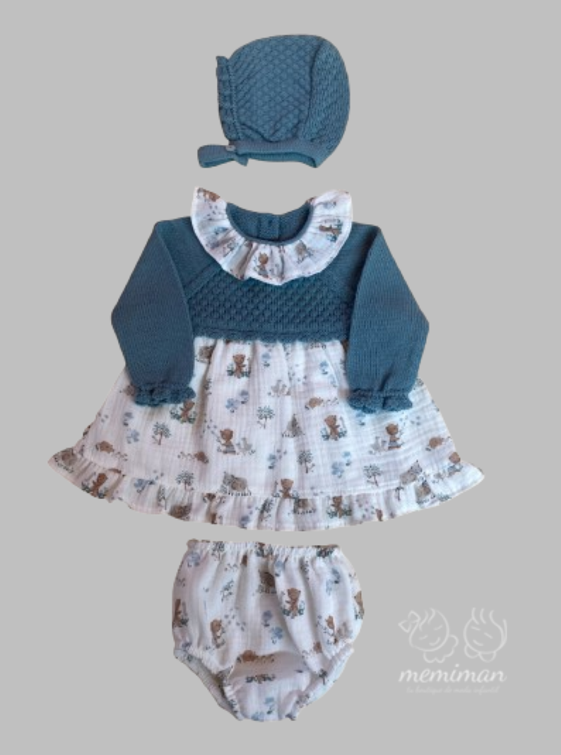 Cet ensemble pour bébé comprend une barboteuse en tricot et imprimé, complétée par un bonnet en tricot et une couverture assortie. Parfait pour le confort et la délicatesse, cet ensemble assure à votre tout-petit un look adorable et une protection optimale pour toutes les occasions spéciales comme au quotidien. Un ensemble complet, soigné dans les moindres détails, avec douceur et élégance.