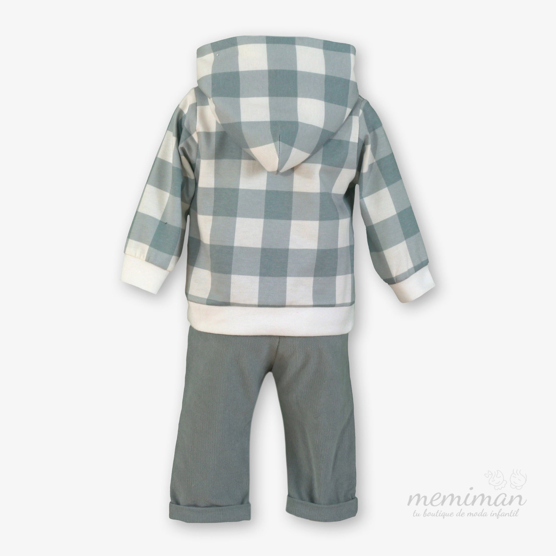 Cet ensemble bébé comprend un sweat à capuche vichy, idéal pour garder votre tout-petit au chaud et avec style. Le pantalon en micro-velours côtelé est doté de poches pratiques et d'une taille élastique pour un confort optimal tout au long de la journée et un maintien parfait. Idéal au quotidien, il allie fonctionnalité et design pour un vêtement confortable et facile à porter.
