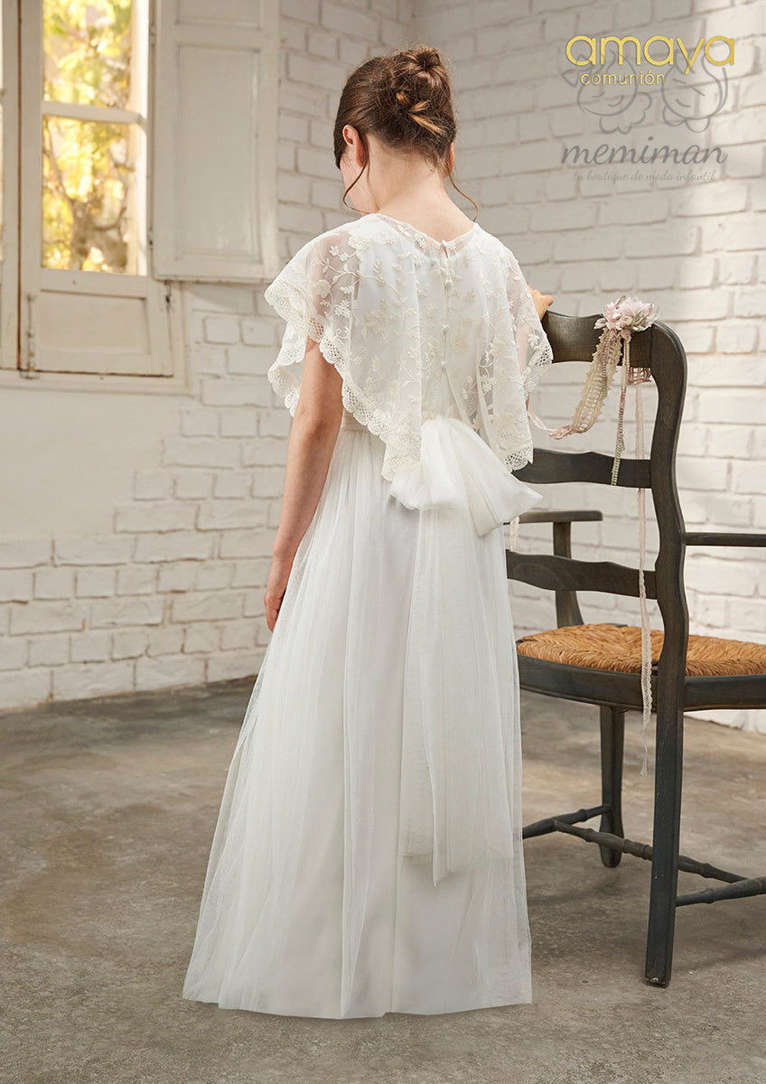 Este mono de comunión en tres piezas incluye falda, mono y capa, ofreciendo versatilidad y estilo en una sola prenda. Su diseño convertible permite adaptarlo fácilmente según la ocasión, proporcionando comodidad y elegancia para un día especial. Ideal para quienes buscan una opción práctica sin renunciar a la tradición.