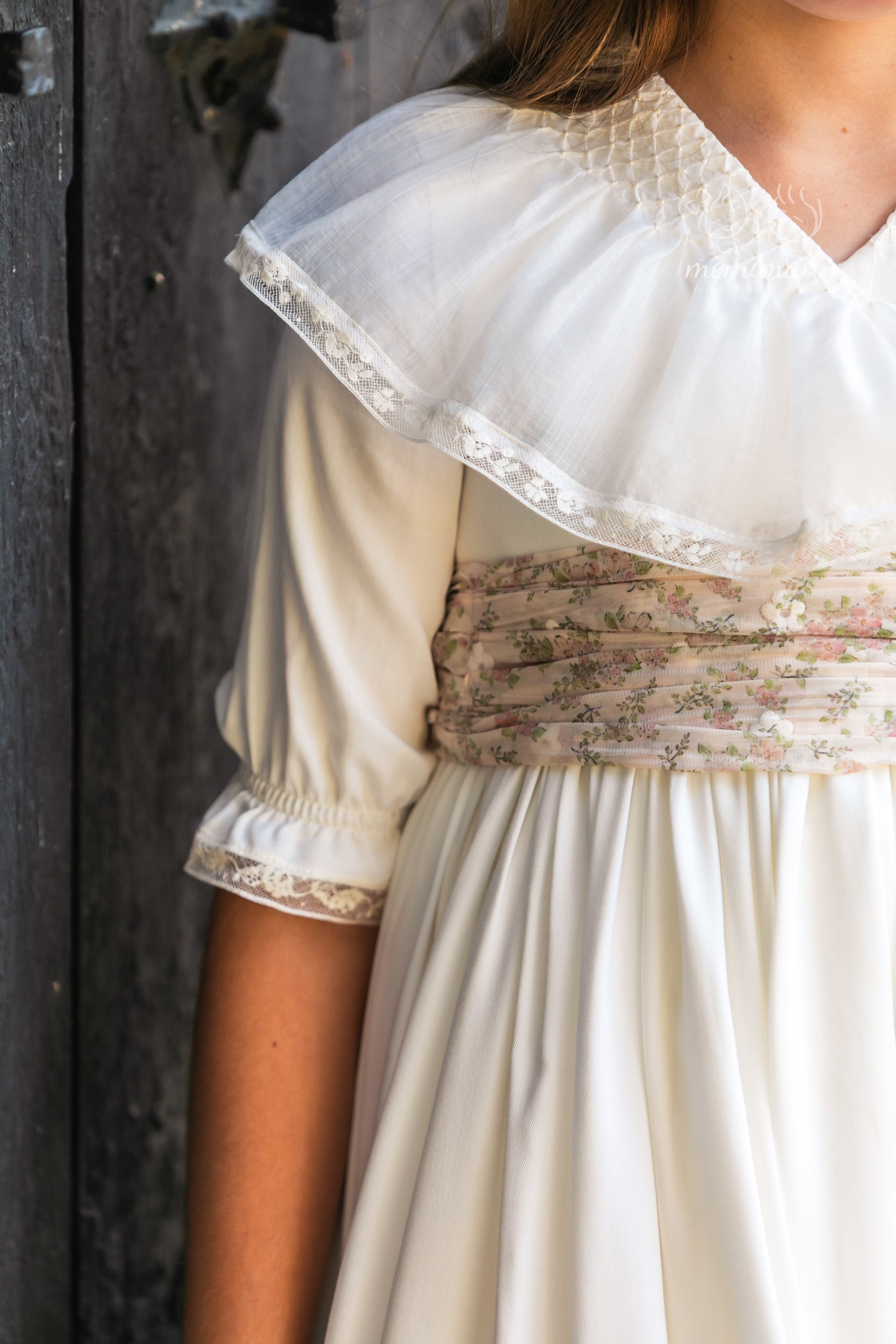 El vestido CRUZ 26 combina elegancia y comodidad con su cuerpo cruzado y mangas al codo. Su falda con volante canastero aporta un toque delicado y juvenil, ideal para momentos especiales como una comunión. Diseñado para realzar la belleza natural con un estilo sencillo y distinguido.