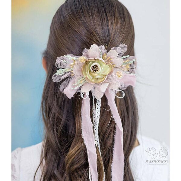Tocado Comunión: elegancia artesanal para el gran día de tu hija. Confeccionado a mano con delicado encaje y flores de tela, este tocado combina tradición y belleza en cada detalle. Perfecto para comuniones y ceremonias especiales, aporta un toque de sofisticación y encanto a cualquier look festivo. Una pieza única que realza la elegancia natural de las niñas en sus momentos más memorables.
