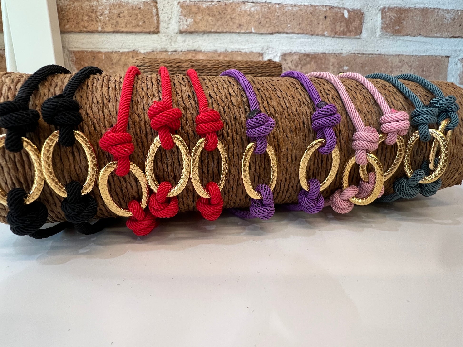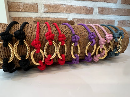 Pulsera con adorno dorado anudado realizada con cordón rematado con adorno de acero inoxidable que aporta un toque sofisticado. Su cierre garantiza un ajuste perfecto. De la colección primavera-verano de by Lu for You.