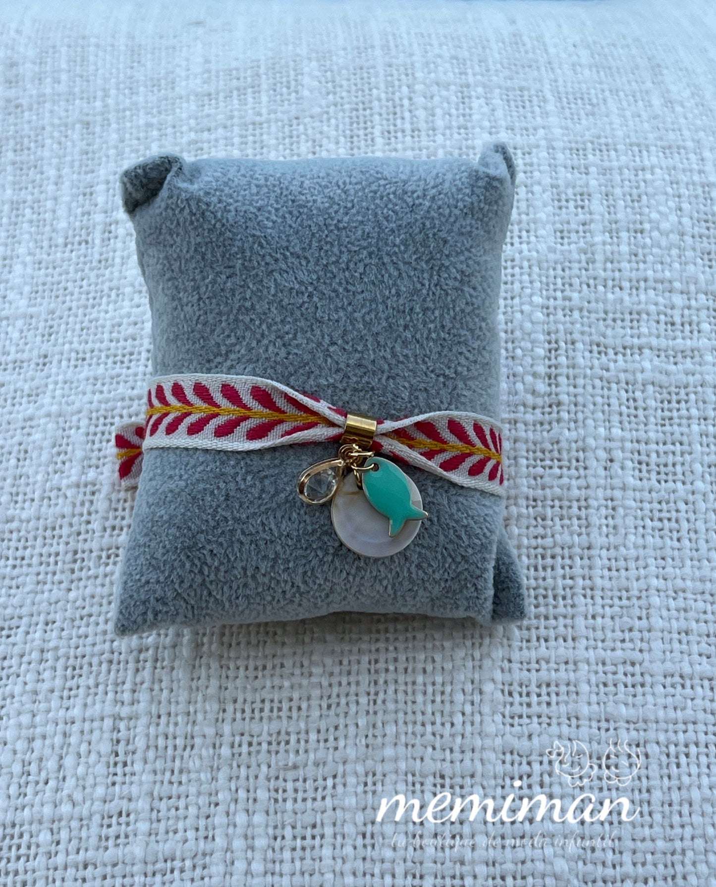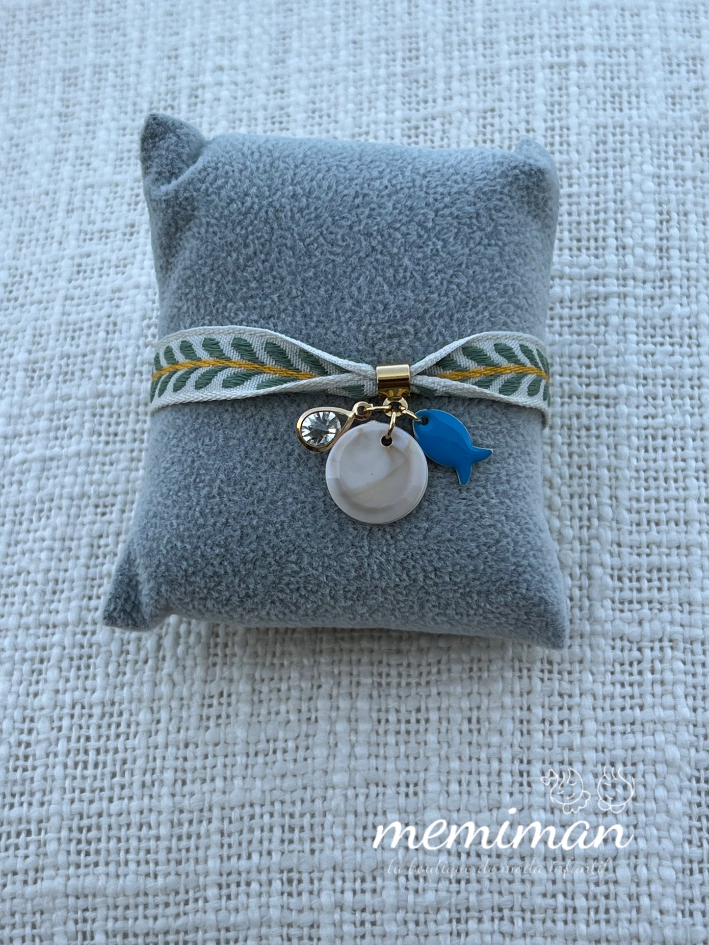 Esta pulsera ajustable con cinta con estampado de espiga, combinada con delicados adornos que aportan un toque sofisticado. Su cierre rematado con pieza de acero y perlas sintéticas garantiza un ajuste perfecto. De la colección primavera-verano de by Lu for You.