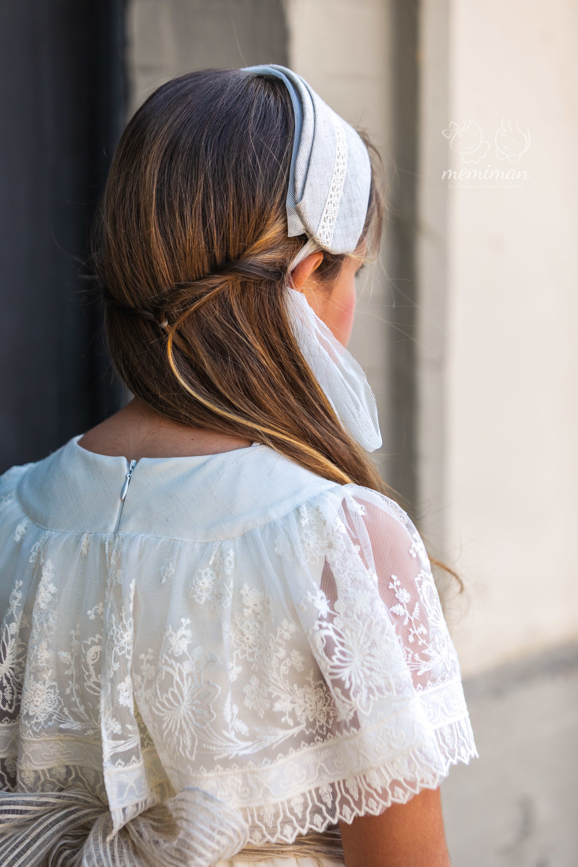 El vestido de comunión ISABEL destaca por su elegante cuerpo con capelina incorporada que aporta un toque clásico y delicado. La falda, confeccionada en tul bordado y rematada con blondas finas, ofrece un acabado sofisticado y lleno de detalle. Perfecto para acompañar a los primeros momentos de celebración con comodidad y estilo.